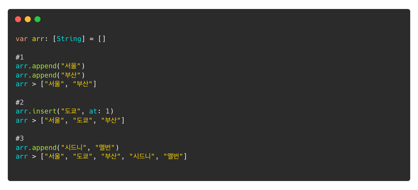 - 하나의 배열 안 아이템의 데이터타입은 전부 같아야 한다