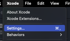 우선 Xcode -> Settings 로 진입해서 설정창을 열어주세요