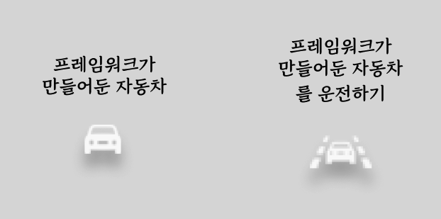 프레임워크는 커다란 틀, 규칙을 정의하여 개발자가 이 규칙을 따르게 함으로써