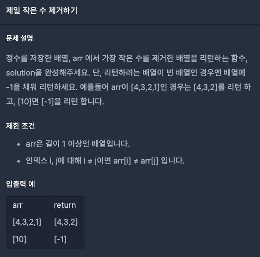 # 프로그래머스 문제 _ 링크 :: 제일 작은 수 제거하기 (Swift)