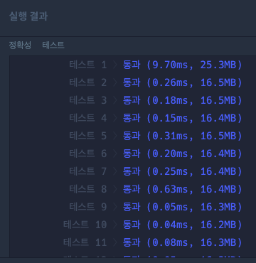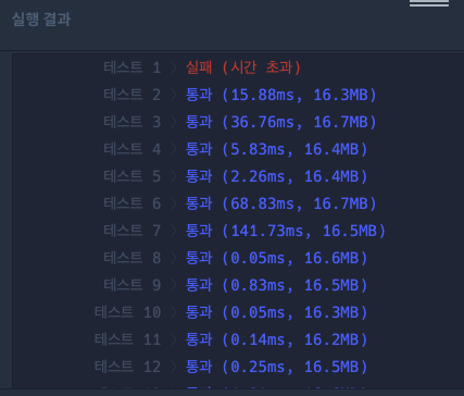 시간초과는 테스트 케이스 1번에서만 발생했지만, 다른 테스트 케이스들도 이상하게 오래 걸렸다.