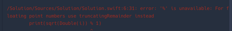 var sqrtValue = sqrt(Double(i)).truncatingRemainder(dividingBy: 1.0)