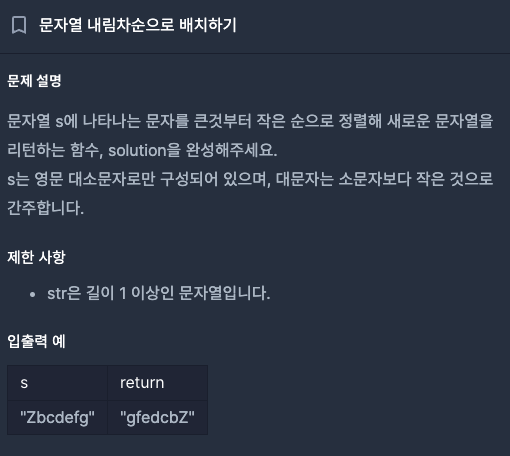 프로그래머스 문제 링크 : https://school.programmers.co.kr/learn/courses/30/lessons/12917