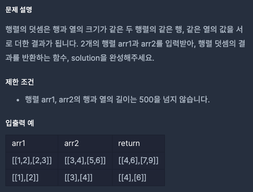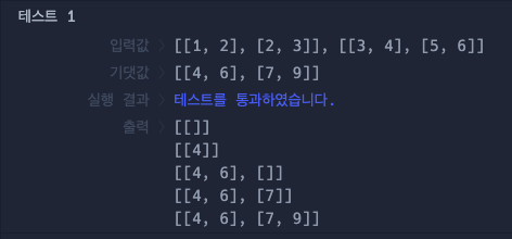 크기가 같은 두 행렬의 같은 행, 같은 열 값을 더한 결과를 반환하는 문제이다