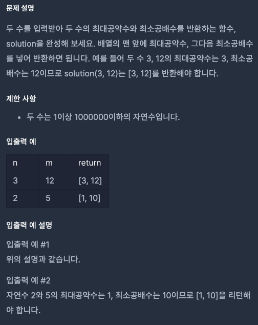 프로그래머스 문제 링크 : https://school.programmers.co.kr/learn/courses/30/lessons/12940