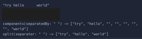 - omittingEmptySubsequences : 공백도 따로 쪼개는지 여부 결정 -> Bool 타입